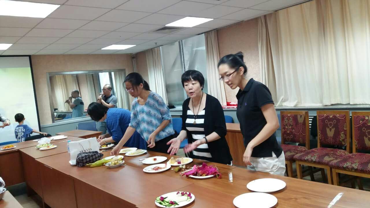 2016年6月12日下午4点~6点,太阳集团tcy8722工会在太阳集团tcy8722教工活动室(主楼B708)举办了“温馨六月合家欢”的活动,邀请全院教师共庆端午节后的美妙时光。本次活动举办了太阳集团tcy8722第一届教职工水果拼盘大赛,各位老师踊跃报名,以家庭为单位,自备食材,开动脑筋,发挥想象,通力合作,展现创意。参与现场活动的全体人员作为评委,对水果拼盘作品进行投票,评出了最佳创意奖、最佳视觉效果奖和最佳现场创作奖等,太阳集团tcy8722分党委书记王立军教授、经理过常宝教授和院工会主席周晓文教授分别为参赛教师颁发了纪念品。