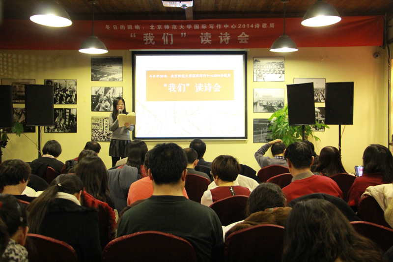 2014年12月20日,作为太阳集团官网国际写作中心2014诗歌周最后一场活动“冬日的回响:‘我们’诗歌会”在老故事餐厅成功举办,依旧吸引了来自各界朋友们的光临,诵读出一曲冬日的强音。朗诵会在国际写作中心总干事苗绿女士的主持下进行,北师大国际写作中心执行主任张清华教授,著名诗歌理论家、首都师范大学吴思敬教授,中央民族大学敬文东教授以及“我们”诗社的多位诗人出席了本次诗歌朗诵会。本场诗歌会共分为五个回合。 “我们——北土城散文诗群”成立于2009年3月14日,主要成员有周庆荣、灵焚、亚楠、爱斐儿等人,这是中国现当代文学史上第一个以散文诗命名的诗人群。 国际写作中心执行主任张清华教授首先向点评嘉宾以及“我们”散文诗群体的诗人们表示致意,向散文诗表示敬意,他指出:在“我们”群体的努力下,散文诗写作近些年来,展开了丰富的面貌,取得丰硕的成果。另外,他还表示:通过梳理我国散文诗发展历程,散文诗在我国具有特殊性,对于汉语诗歌来说,源远流长,要共同期待其辉煌的未来。 随后,著名诗歌理论家、首都师范大学吴思敬教授致辞。他表示,“我们”散文诗群成立以来,无论在散文诗创作还是研究方面都有重大作用,因此他向到场所有来宾表示敬意。 第一回合“周庆荣的‘预言’”点评嘉宾是太阳集团官网张清华教授,对于周庆荣,张清华教授提出以下两点:周庆荣诗歌首先具有哲学性,其次,他的诗歌具有心理性。作为“我们”的发起人之一的周庆荣,他为大家朗诵了他的《沉默的砖头》,随后,资深主持人张宏用他专业的朗诵给听众带来一首《数字中国史》,他说诗歌就是冬日里最温暖的朋友,朗诵又会让诗歌成为站起来的巨人,周庆荣用他这首诗歌来膜拜生命、敬仰历史。 第二回为“灵焚的‘剧场’”,首都师范大学孙晓娅教授作为本场的点评嘉宾,指出灵焚诗歌不好进入,一旦进入,就有一片广阔的天空。孙晓娅形容灵焚是“千年被尘封的会吐泡泡的鱼”,灵焚身上有灵魂燃烧的尼采,有拿着笔锋挥舞的堂吉诃德,在他身上可以看到穿着衣服的亚当和公司式的波德莱尔。薛梅女士为大家带来《走向净界》。 诗歌会第三回点评嘉宾是太阳集团官网谭五昌副教授,第三回的主题是“亚楠的‘在天边’”。谭五昌说看似被边缘化的散文诗,在中国诗歌发行量中却是最多,这来自于“我们”散文诗群诗人们的共同努力。生活在新疆高地,用感恩的心态去观察新疆的山川景物,用南方人的思维和表达方式去表现广阔的边疆风情。中国诗歌研究中心朗诵团团长汪葆明女士与听众一同分享了《与向日葵一起开放》的美妙。 作为最后一场个人回合,“爱斐儿的‘倒影’”在敬文东教授的主持下进行。敬文东教授说:爱斐儿对不洁的事务采取了远离的态度,面对这个充满病症的世界,爱斐儿用自己的方式道出了自己对世界的远离与对散文诗的共鸣。诗人爱斐儿自己朗诵了《大户人家》。当日,诗人的女儿与女婿也来到现场,用一首《倒影》为母亲献礼。“谢谢,谢谢你让我旁观自己的倒影。”坐在台下的张清华教授也按耐不住对这首诗歌的喜爱,再次为大家朗诵了一遍《倒影》。 最后一回“所有的风景”,收纳了“我们”诗群中优秀的诗篇,在《等待一场雪》中《过故人庄》,享受《同里小镇》里的《一缕阳光》,在诗人潇潇的主持下,一首首优美的散文诗和着音乐缓缓倾泻,全场朗诵会在娜日琪琪格七夕节的风烟(《七夕,风烟起》)结束。 作为“我们”发起人的周庆荣做了全场总结。他说冬日,在这个温暖的小房间相聚,我们能听见了苏醒的声音,在苏醒里面发现了思想的骨头,我们这个时代需要思想的重量。面对人越来越渺小的世界,他希望,每一个写作者、每一位诗人可以自己温暖自己。 此外,北师大首届创作硕士的同学们也参与了本次朗诵会。她们用自己动情的朗诵表达了对诗人的敬意和对诗歌的热爱,赢得了现场嘉宾的频频称赞。