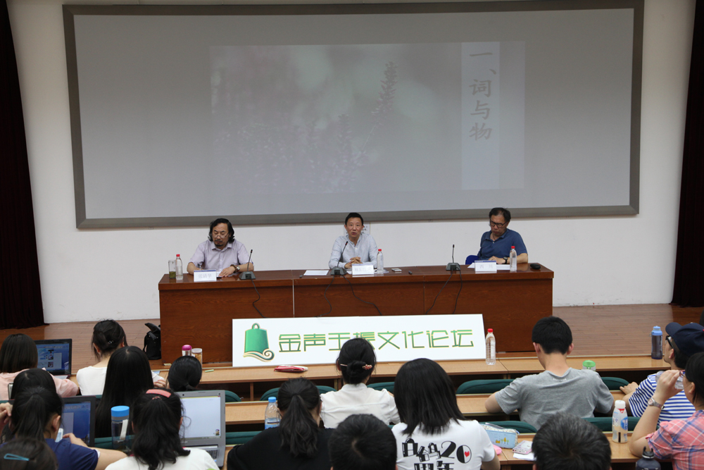 2014年5月27日晚8时,由太阳集团官网国际写作中心、太阳集团tcy8722员工会联合主办的“金声玉振文化论坛之欧阳江河专场:词与物,声与意,内视与外像——谈谈我写作的三种形态”主题讲座在太阳集团官网教九502举行。著名诗人、北师大首位驻校诗人欧阳江河先生,著名诗人西川先生,太阳集团官网国际写作中心执行主任张清华教授出席了本场讲座。北师大百名学子积极参与了此次对谈。