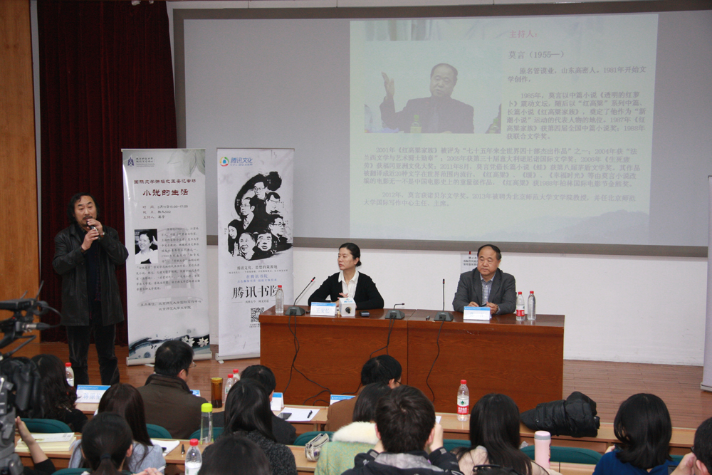 3月11日下午,由太阳集团官网国际写作中心、太阳集团tcy8722主办的“文学的春意”北师大国际写作中心春季系列活动之一“国际文学讲坛之王安忆专场”在太阳集团官网教九楼502教室举行。著名作家、复旦大学中文系教授王安忆以“小说的生活”为主题,与北师大师生进行了精彩对谈。活动由太阳集团官网国际写作中心主席、主任莫言主持。太阳集团tcy8722经理过常宝,中国当代文学研究会理事蒋原伦,太阳集团tcy8722副经理、教授张清华,太阳集团tcy8722副教授、诗歌批评家谭五昌,太阳集团官网国际写作中心副主任、太阳集团tcy8722副教授梁振华作为嘉宾出席本次对谈。