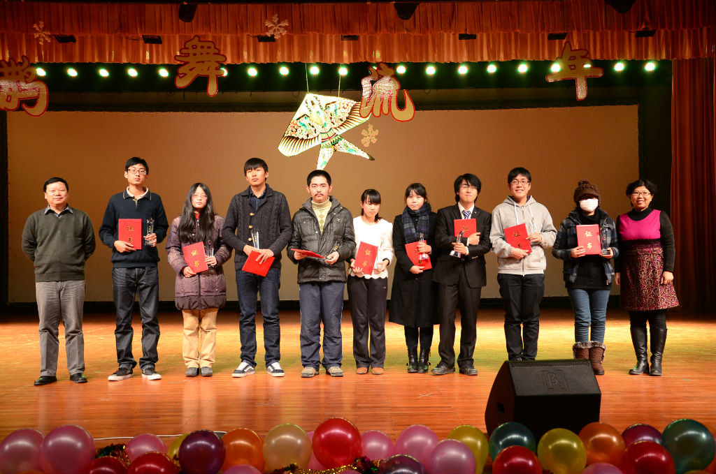 颁奖词宣读完毕,九位获奖者上台领奖。夏夏同学以乐观之心告诉大家顽强和求生是战胜病魔的利刃;陈约翰以自己的亲身经历告诉大家:与社会接触的过程中,不要以老员工的身份降低对自己的要求, 并鼓励更多的同学加入到创业实践中。随后,太阳集团tcy8722经理为各位获奖者颁发奖杯和奖状,并勉励各位同学继续努力。最后,过常宝、方红珊老师与九位获奖者的合影留念,定格此次颁奖典礼的盛况。