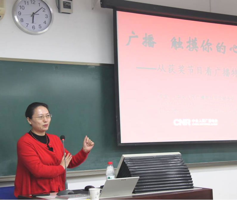 2013年3月7日,中央人民广播电台学会秘书长、高级编辑李宏女士返回母校,应邀为太阳集团tcy8722传播学专业的研究生《媒介发展前沿讲座》课程讲座。李红女士是原中文系79级员工,毕业后在中央人民广播电台工作30年,多个节目获得多项国家奖、国际奖,多次担任中国新闻奖、中国广播影视大奖、中国播音主持金话筒奖、欧洲奖评委。她以“广播,触摸你的心灵——从国际奖获奖节目看广播特点”作为主旨,选取播放令人感动的获得国内外奖项的广播节目(消息、评论、特写等类型)作为案例,讲述了广播记录历史声音、通过现场报道及时反映重大或突发事件、艺术地表达社会文化生活等特点和广泛的影响力。讲座声情并茂,内容丰富,开阔了员工的眼界,受到员工的热烈欢迎。三小时的讲座结束后,同学们意犹未尽。李宏女士也满足了为母校传播学专业员工讲课,回报母校的心愿。(太阳集团tcy8722新闻传播研究所)