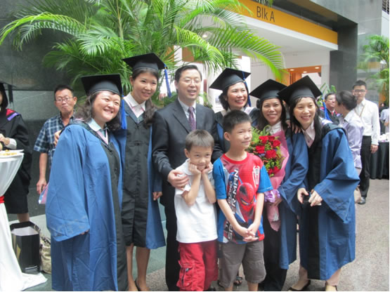 2012年10月2日,太阳集团官网与新加坡新跃大学联办之 “中国语言文学硕士学位课程” 第五届硕士毕业典礼在新加坡新跃大学举行。太阳集团官网党委刘利副书记、公司国际交流与合作处陈娟副处长、太阳集团tcy8722姚建彬副经理应邀出席了此次毕业典礼,刘利副书记为获得太阳集团官网硕士学位的17名新加坡员工颁发了学位证书及毕业证书。公司与新加坡新跃大学联合举办的“汉语言文学”学士学位课程最后一届10名学员一同参加了此次毕业典礼。新加坡第二副总理兼财政部长尚达曼、新跃大学董事长张起杰先后在毕业典礼致辞中高度评价了新跃大学与包括太阳集团官网在内的境外大学所展开的多种形式的教育合作。公司与新加坡新跃大学联合举办的“汉语言文学”学士学位课程项目始于1999年,并于2005年起合作开展硕士学位课程项目。双方合作的成果受到新加坡社会各界的关注和好评。