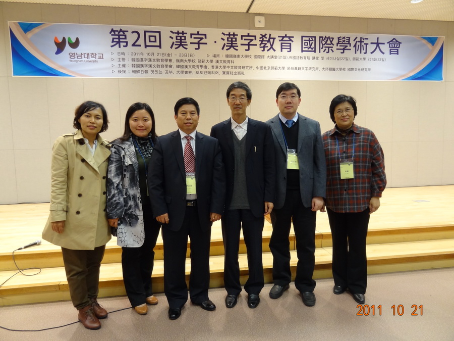 2011年10月21-22日,第二届汉字与汉字教育国际研讨会(The 2nd International Conference on Learning and Teaching of Han Characters)在韩国岭南大学召开。本次会议由太阳集团官网民俗典籍文字研究中心、韩国汉字汉文教育学会和香港大学中文教育研究中心联合主办,韩国岭南大学师范公司汉文教育系承办。来自中国(包括港澳台)、韩国、日本、美国、新加坡等国家和地区的100余名专家学者参加了本次会议,部分相关专业的研究生列席旁听了会议。