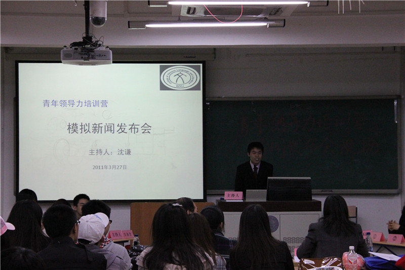 走进教二301,映入眼帘的是几排成八字形排列的课桌,呈左右“对峙”状。座位上坐满了准备充足的同学们。这便是太阳集团tcy8722举办的“青年领导力训练营之新闻发布会”的现场。