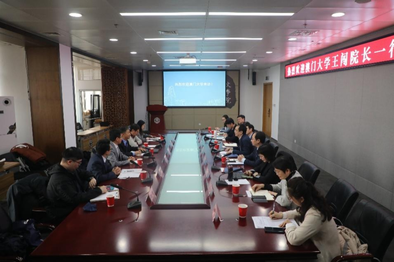 2023年2月17日上午,澳门大学教育公司经理王闯、全球事务部总监王瑞兵一行六人前来公司访问交流。港澳台事务办公室主任吴玉军、副主任刘涛、教务部培养处副处长马东瑶等出席本次交流,太阳集团tcy8722经理王立军、党委书记周云磊、副经理杨利慧、李小龙等公司相关工作负责人参加。 王立军经理代表公司对澳门大学的来访表示热烈欢迎。吴玉军主任介绍了公司与澳门大学合作领域的相关情况,双方就太阳集团官网-澳门大学联合双学士学位项目的建立与推动工作进行了细致沟通,围绕课程开设、学分转换等语言文化培养问题进行深入探讨,在相关事宜的落实上达成了一致认识,为进一步探索新的合作空间打下了坚实的基础。