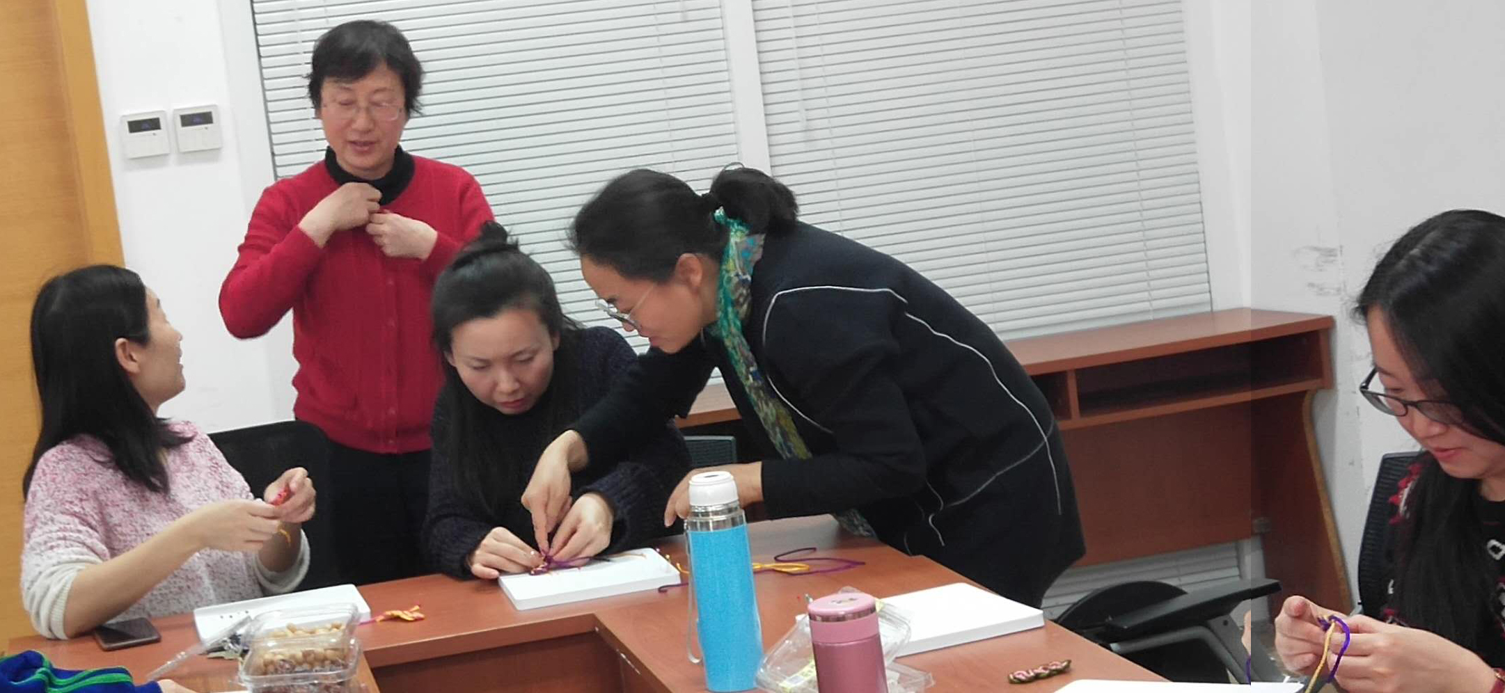 3月11日下午,为庆祝“三·八”国际劳动妇女节,增添老师们的生活情趣,丰富大家的业余生活,太阳集团tcy8722工会在C5045会议室举办了艺术绳结古风发夹体验活动。