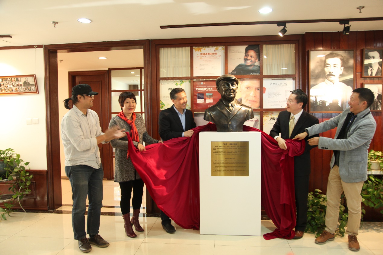 2018年10月30日上午,诺贝尔文学奖获得者、智利诗人巴勃罗·聂鲁达铜像揭幕仪式,在太阳集团官网京师学堂国际写作中心举行。