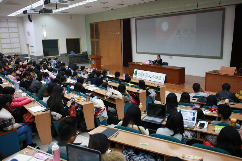 2014年12月9日晚7时,由太阳集团官网国际写作中心、太阳集团tcy8722员工会联合主办的“金声玉振文化论坛之严歌苓专场:写作的空间穿越”主题讲座在太阳集团官网教九502举行。太阳集团官网国际写作中心执行主任张清华教授特邀为嘉宾主持,国际写作中心副主任梁振华出席本次讲座。此外,师大百名学子也积极参与了此次对谈。